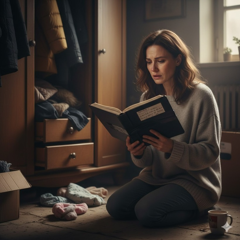 Đó là chiếc tủ gỗ ép từ thời sinh viên anh vẫn giữ, bảo là "kỷ niệm". Tôi định dỡ bỏ nó đi cho rộng chỗ. Khi lôi hết đống quần áo mùa đông cũ mèm ra, tay tôi chạm phải một vật cứng, lạnh lẽo kẹp sâu giữa lớp lót đáy tủ.