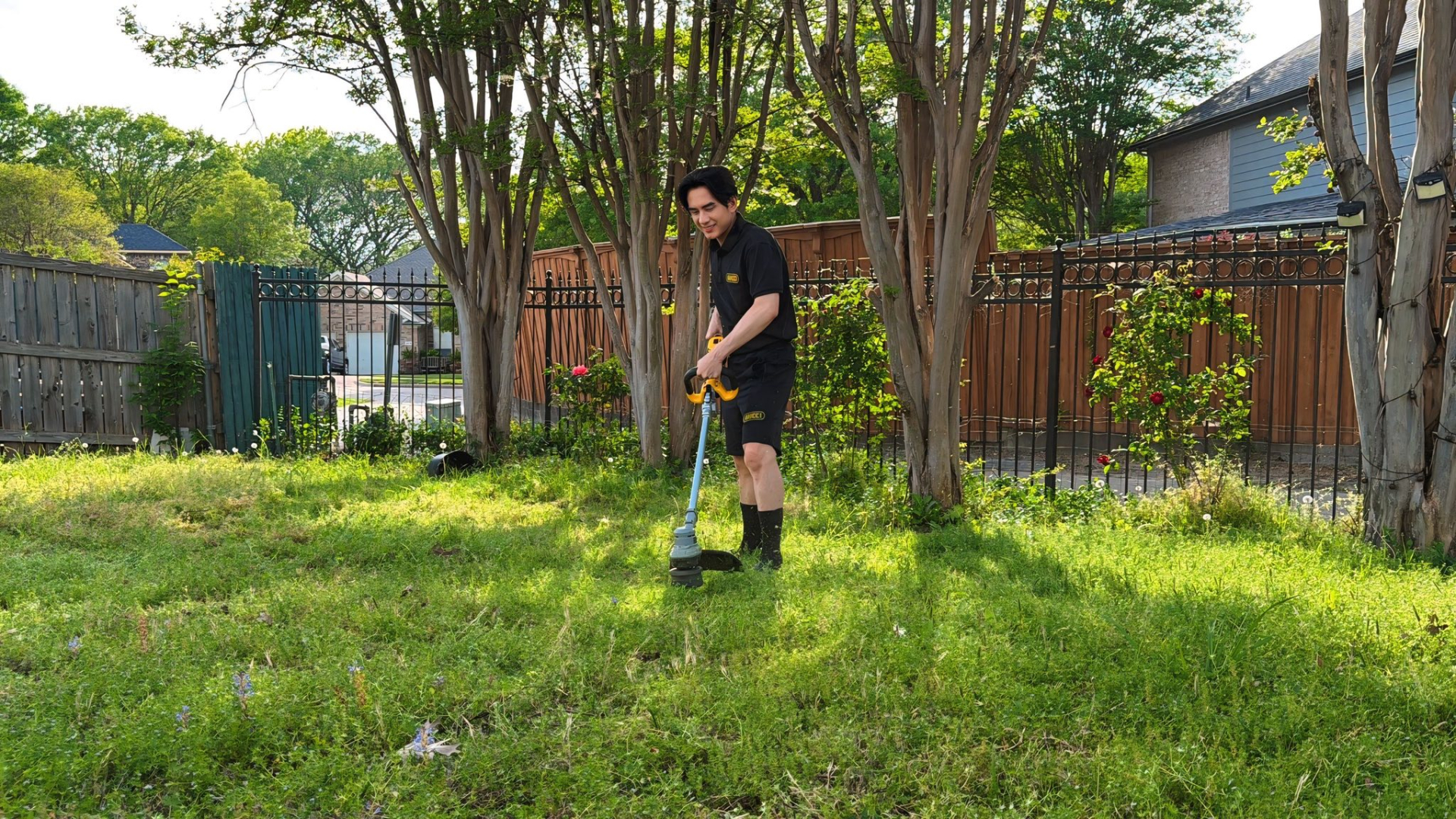 Đan Trường tự tay dọn cỏ trong vườn nhà ở Mỹ