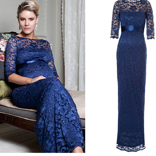 Váy đen dài bằng vải ren với họa tiết vây cá khiến bạn trở thành một nàng tiên cá “ mang bầu” thật xinh đẹp và trẻ trung