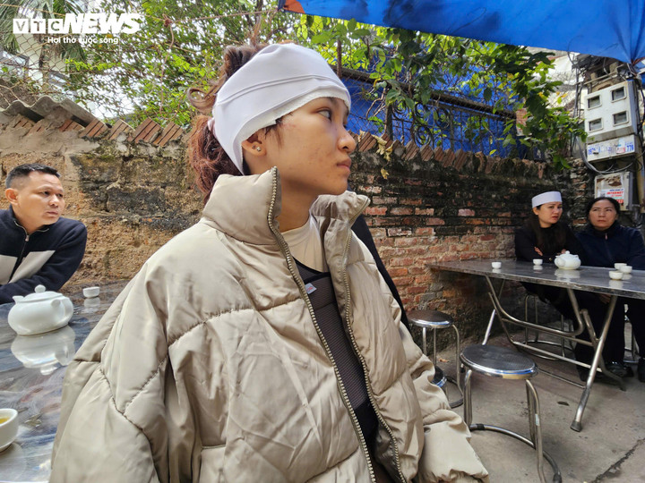 Dù tay còn bó bột, đầu quấn băng do những chấn thương chưa kịp hồi phục, Thảo vẫn túc trực bên linh cữu chị, không rời nửa bước.