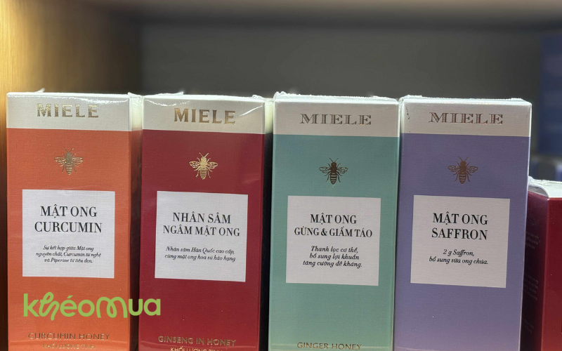 - Mật ong Miele: Bao bì nhìn như nước hoa cao cấp, vị pha chế hiện đại như mật ong curcumin, mật ong nhân sâm, mật ong saffron. Giá khoảng 442.000 đồng/400g - dùng pha trà hay làm quà đều ổn áp.