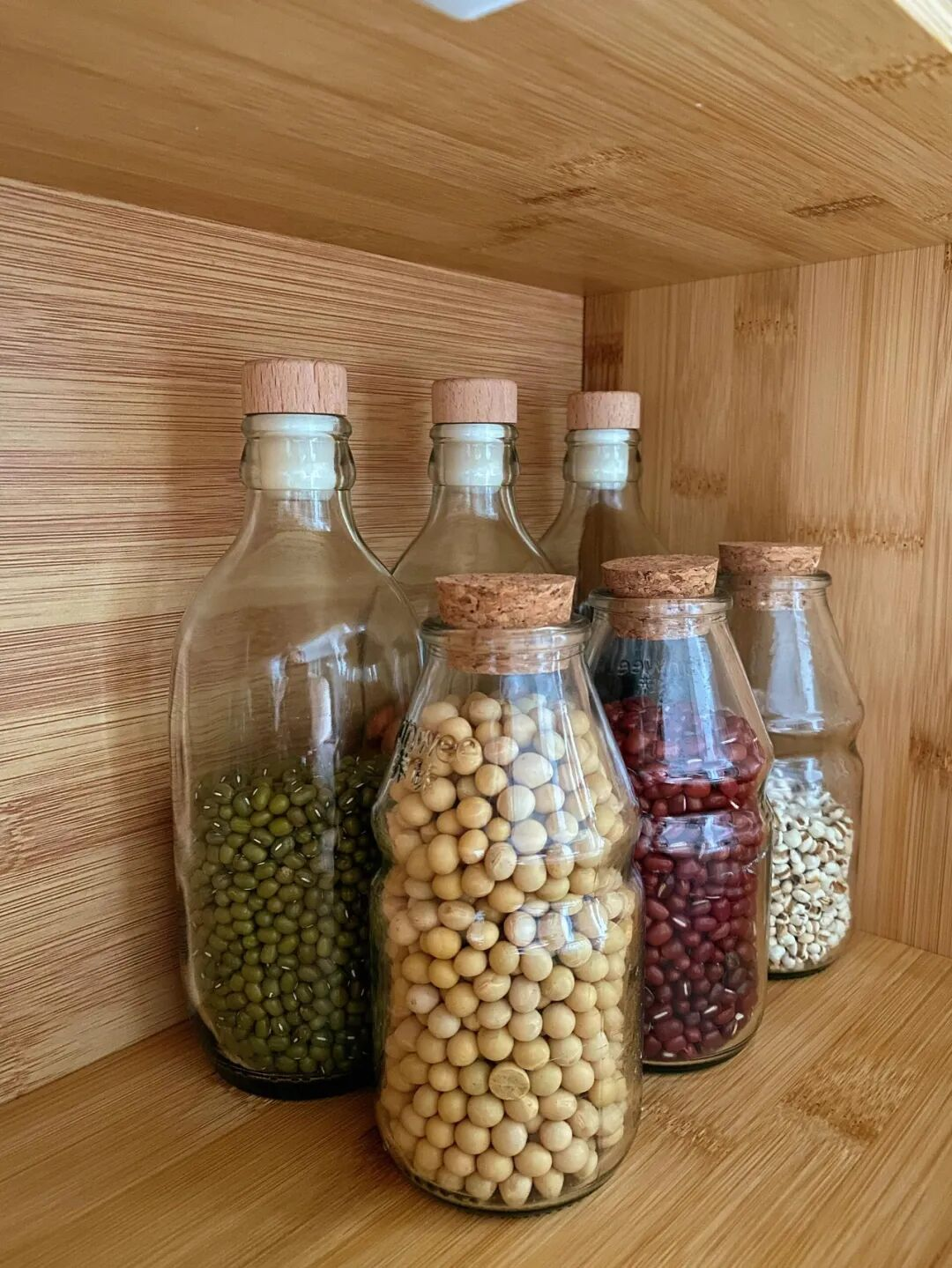 - Chai sữa rửa sạch dùng để đựng gạo, ngũ cốc.