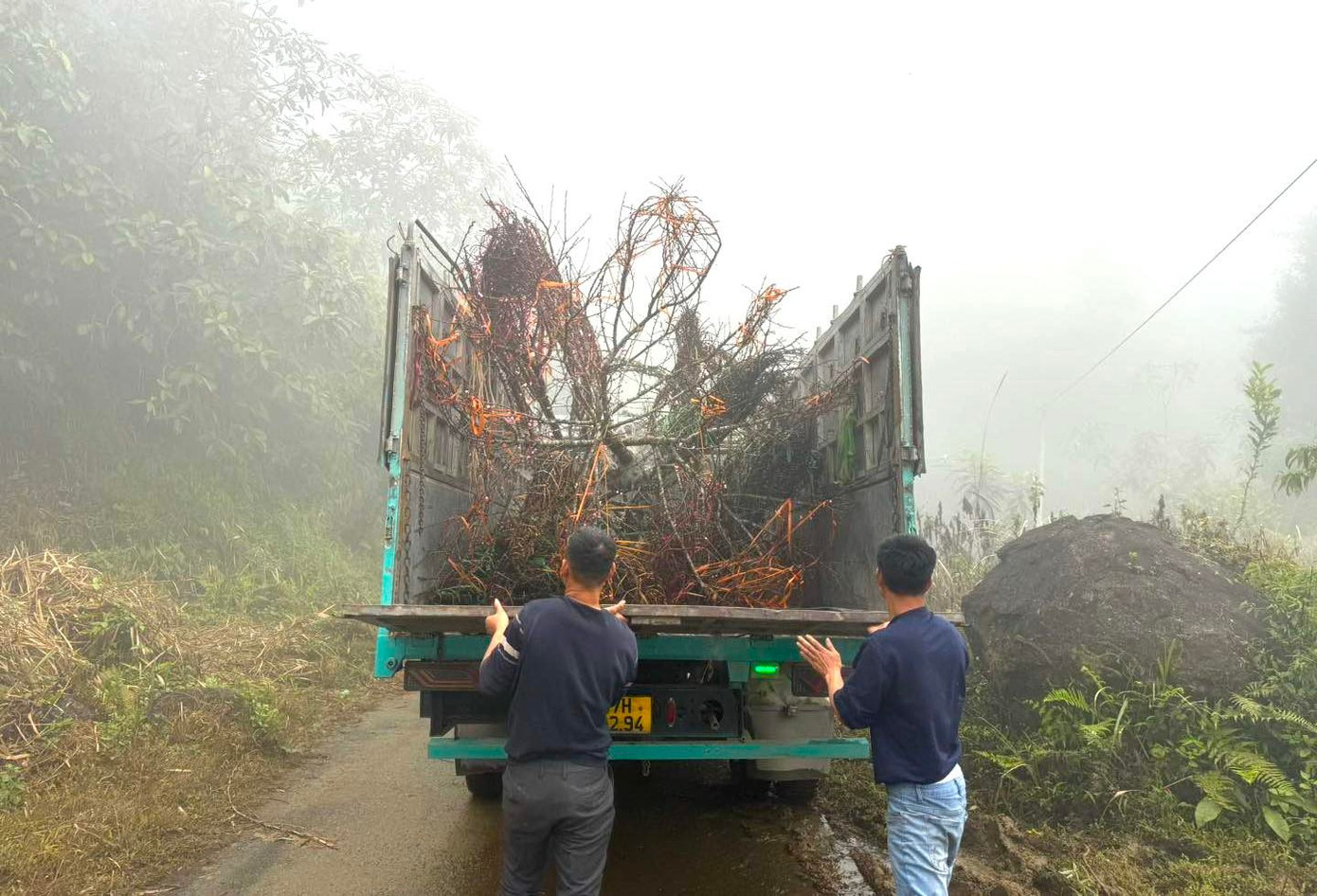 Anh Tuấn cho hay, tìm mua được cành đào đã vất vả, vận chuyển được ra khỏi núi còn vất vả hơn. Việc vận chuyển đào đá là khâu tốn kém và nhiều rủi ro. Bởi đào mọc ở núi cao, đường đi hiểm trở, hầu hết các thương lái phải thuê người dân khiêng vác ra ngoài đường lớn.