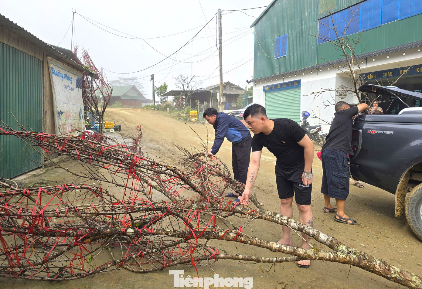 Nhiều thương lái đang tiếp tục lên núi săn mua đào rồi vận chuyển về các khu phố để bán Tết.