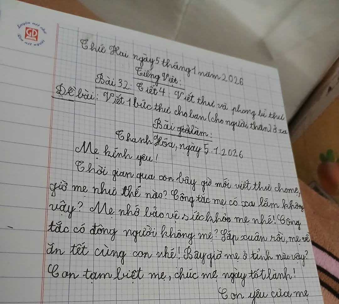 Có lẽ, thay vì lo lắng chuyện “viết không sát thực tế”, người lớn có thể xem đây là dịp để trò chuyện thêm với con: mẹ không đi xa, nhưng nếu một ngày mẹ phải đi công tác thật thì con sẽ viết thư thế nào? Hoặc đơn giản hơn, khuyến khích con viết thư cho mẹ ngay cả khi mẹ đang ở nhà để chữ viết không chỉ là bài tập mà còn là một cách thể hiện yêu thương.