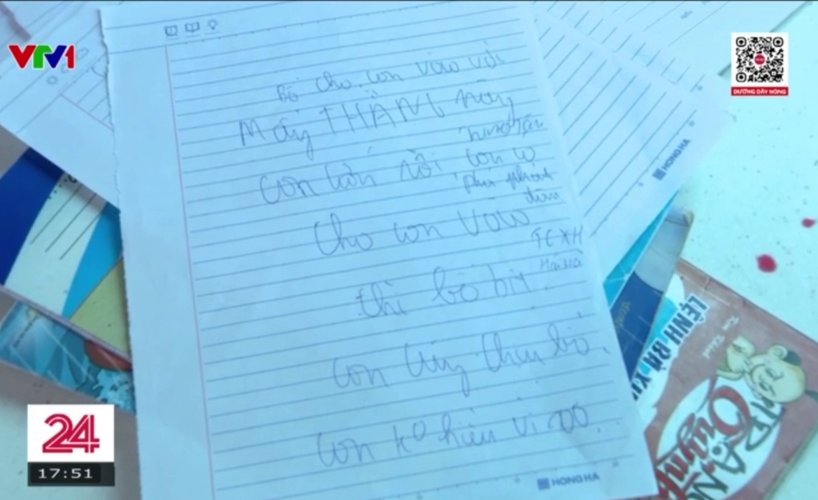 Trên trang giấy trắng, những dòng chữ xô lệch, run rẩy viết vội: "Bố cho con vào với mấy thằng này... con lớn rồi con có phá phách đâu... Cho con vào trung tâm xã hội Hải Hà, con cũng chịu bố...".