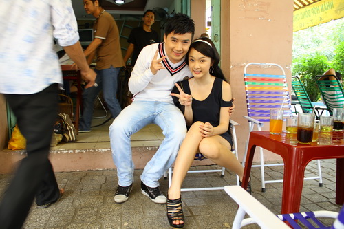 Ca sĩ Nguyễn Hoàng Nam và Phương Trinh xì teen trong giờ nghỉ giải lao