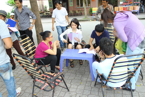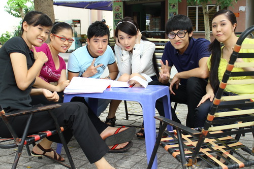 Tất cả cùng tập trung học lại lời thoại trước khi diễn