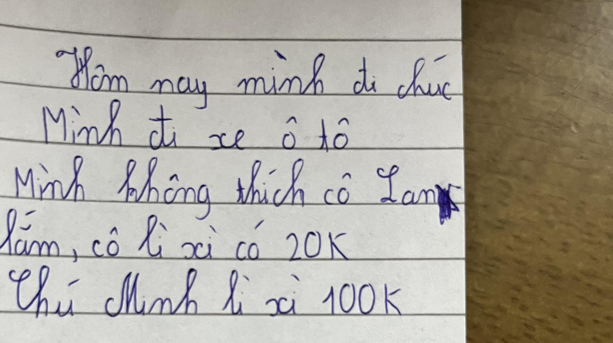 Tối hôm đó, như thói quen thường ngày, con gái lớn của chị là bé My ngồi vào bàn học viết vài dòng nhật ký. Bé vốn có thói quen ghi lại những điều xảy ra trong ngày: hôm nay vui gì, gặp ai, học được gì rồi khoe mẹ. Chị Hương vẫn thỉnh thoảng đọc để hiểu con hơn. Nhưng lần này, khi mở cuốn sổ ra, chị “chết điếng” vì một dòng ngắn ngủi: “Mình không thích cô Lan lắm, cô lì xì có 20k (20.000 đồng-PV)".