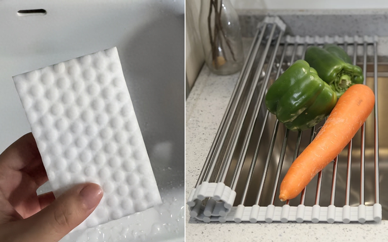 Đây là một phát minh cực kỳ hữu ích cho những căn bếp nhỏ. Khi cần úp bát, chỉ việc trải ngang bồn rửa. Khi không dùng thì cuộn lại, gọn gàng cất vào góc tủ. Giá này còn tận dụng làm miếng lót chịu nhiệt khi đặt nồi canh vừa nhấc khỏi bếp. Với chất liệu an toàn, nó chịu nhiệt tốt, không ám mùi và dùng lâu không biến dạng.