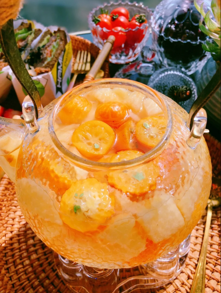 Táo là loại trái cây quanh năm, nhưng vị dịu nhẹ của chúng khiến việc ăn riêng vào mùa đông có vẻ hơi thiếu ấm áp. Tuy nhiên, khi nấu táo cùng với quất, bạn sẽ có một trải nghiệm hoàn toàn khác. Hương thơm của quất được tỏa ra trọn vẹn và hòa quyện với vị ngọt của táo. Nước đun sôi có màu hổ phách nhạt, và một ngụm nước này sẽ mang lại cảm giác dễ chịu từ đầu lưỡi đến tận tim, đặc biệt thích hợp khi bạn cảm thấy khát và ngứa họng vào buổi sáng.