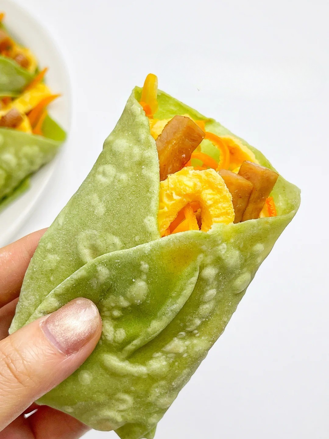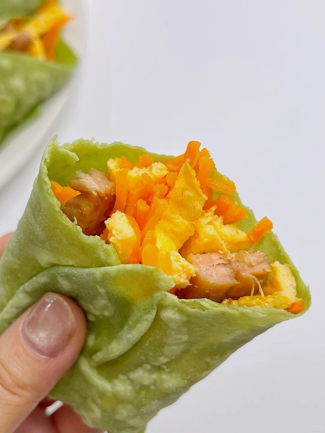 Lấy bánh ra khỏi chảo lúc còn đang nóng hổi, nhẹ nhàng bóc tách ở mép, bạn sẽ có ngay hai chiếc bánh cuộn mỏng tang, siêu mềm, thơm nhẹ mùi bột mì và rau xanh vô cùng quyến rũ.