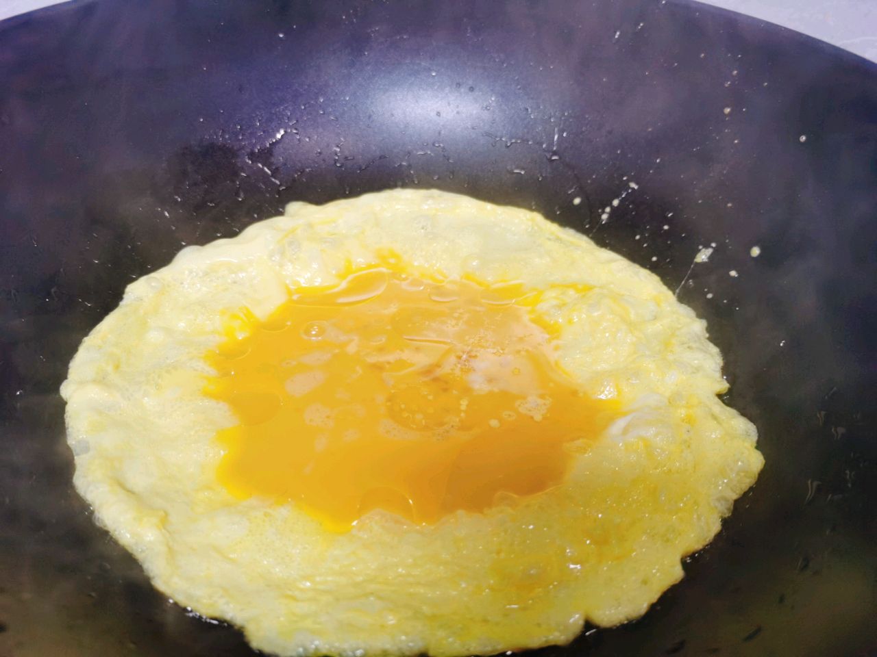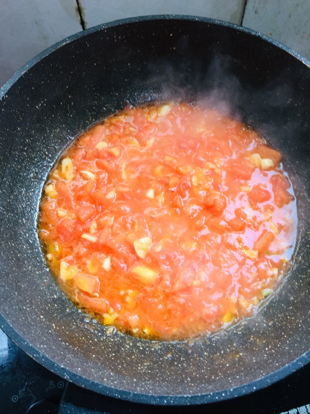 Bước 2: Làm nóng dầu trong chảo, đổ hỗn hợp trứng vào, và khi trứng hơi đông lại, dùng phới dẹt đảo đều cho đến khi vàng nâu và bông xốp. Lấy ra ngay lập tức trứng ra và để riêng. Để lại một ít dầu trong chảo, cho tỏi băm vào xào thơm. Sau đó cho cà chua thái nhỏ vào và xào đều trên lửa vừa. Bước này rất quan trọng; tiếp tục xào cho đến khi cà chua mềm, tiết ra nước và tạo thành nước sốt màu nâu đỏ. Đây là cách để hương vị chua ngọt của cà chua được giải phóng hoàn toàn. Bạn có thể thêm một chút muối để giúp cà chua tiết nước nhanh hơn.