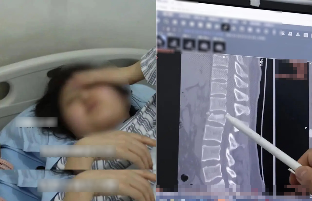 Bác sĩ giải thích rằng các đốt sống thắt lưng của cô gái nêu trên đã bị tổn thương nghiêm trọng, và nguy hiểm hơn, một mảnh xương đã dịch chuyển ra phía sau, chèn ép trực tiếp vào ống thần kinh. Ống thần kinh vốn nguyên vẹn giờ chỉ còn lại khoảng một phần ba chiều rộng.