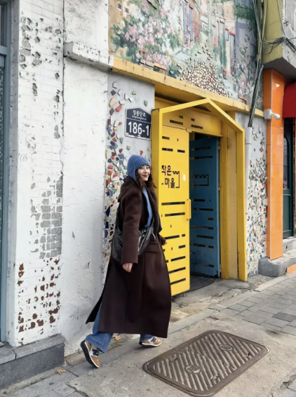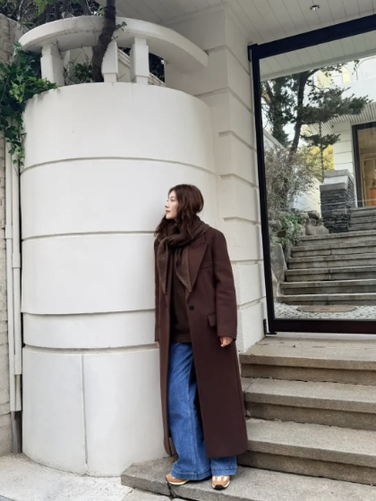Nếu phải dùng một từ để mô tả Cao Viên Viên ở tuổi 46, đó chắc chắn là "phóng khoáng". Bạn có thể thấy cô ấy đứng giữa con phố mùa đông trong chiếc áo khoác dạ màu nâu trầm ấm, phối cùng quần jeans ống rộng xanh cổ điển và một đôi giày lười giản đơn. Nụ cười rạng rỡ, mái tóc bồng bềnh tự nhiên, đó không phải là vẻ đẹp không tì vết của những tấm hình đã qua chỉnh sửa kỹ càng, mà là vẻ đẹp của một người đang thực sự tận hưởng dòng chảy của cuộc sống.