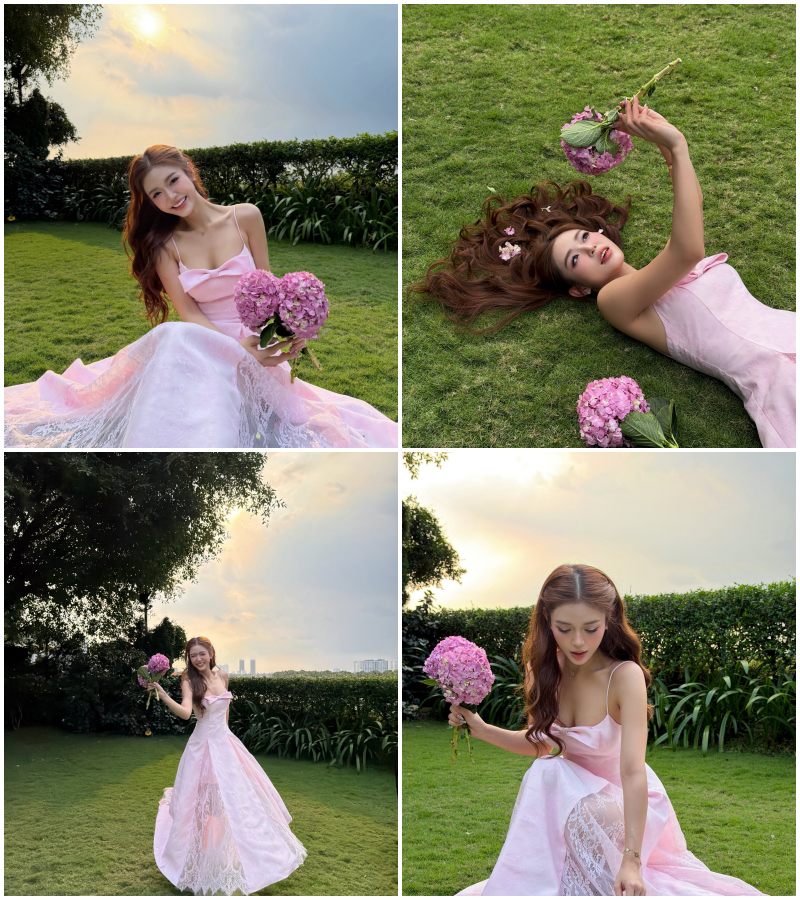 Á hậu Cẩm Ly - mỹ nhân được "đẩy thuyền" với Đình Bắc cũng khoe hoa xinh ngày lễ.