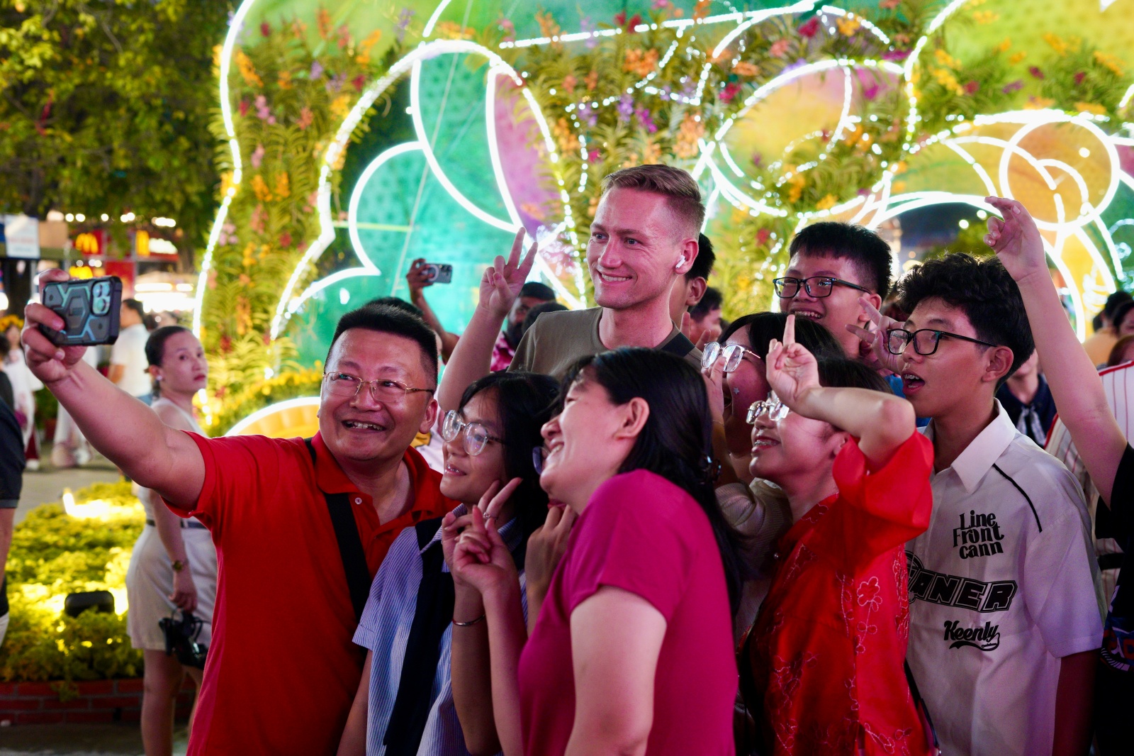 Năm nay, đường hoa mang chủ đề "Xuân hội tụ, vững bước vươn mình", được đầu tư đồng bộ về ý tưởng lẫn công nghệ. Nhiều tiểu cảnh tích hợp trí tuệ nhân tạo (AI) và công nghệ thực tế tăng cường (AR), cho phép khách tham quan tương tác, quét mã để trải nghiệm hiệu ứng hình ảnh động. Cách làm này không chỉ tăng tính hấp dẫn mà còn tạo dấu ấn mới cho một sự kiện vốn đã trở thành "thương hiệu" mỗi dịp xuân về.