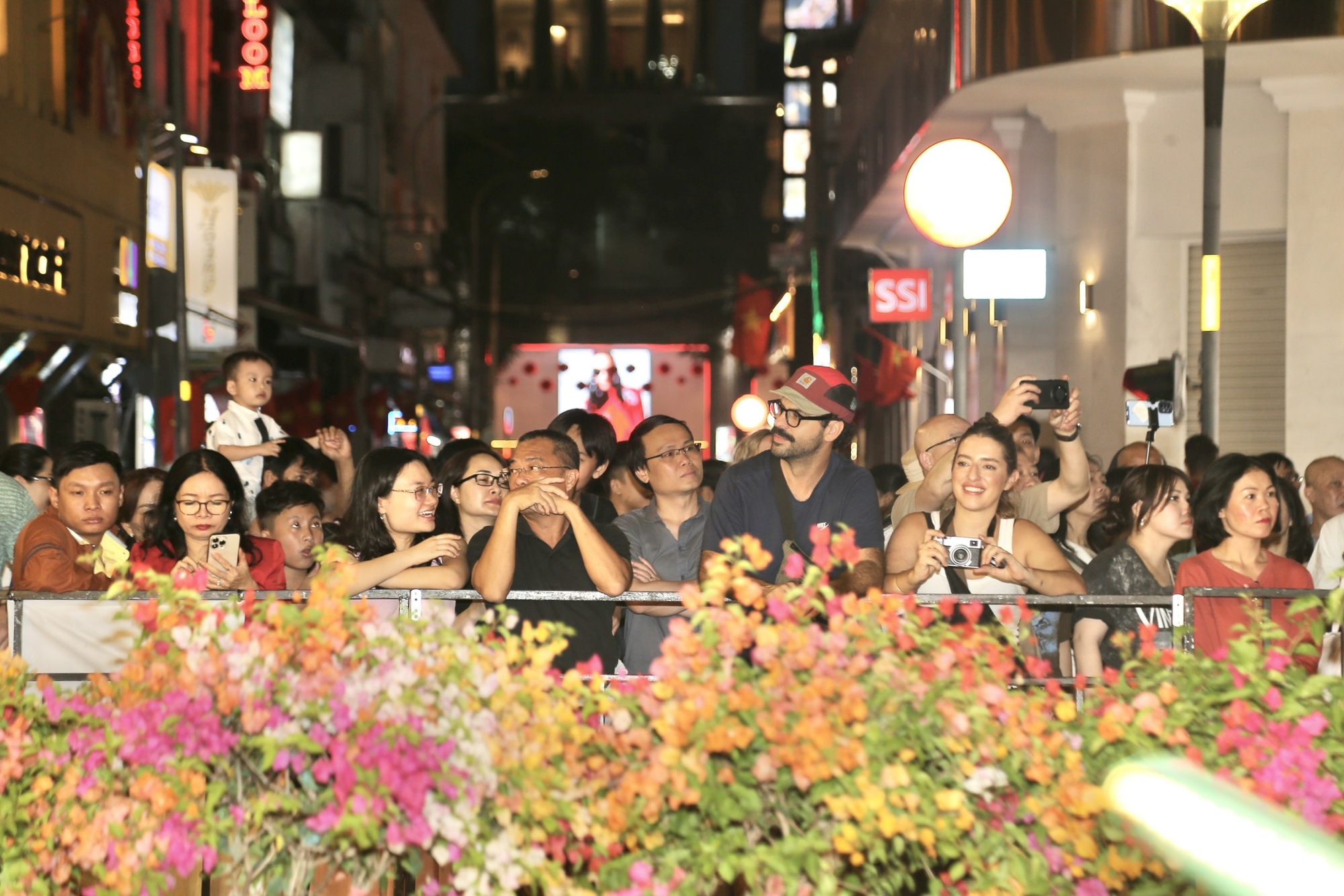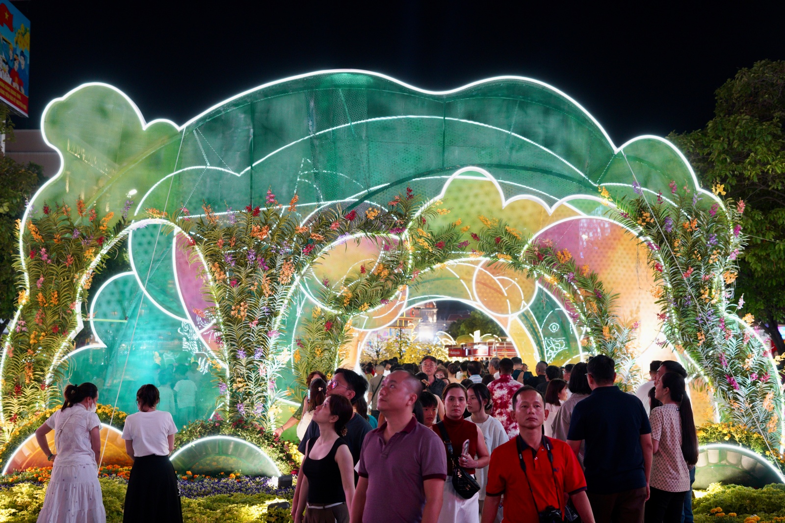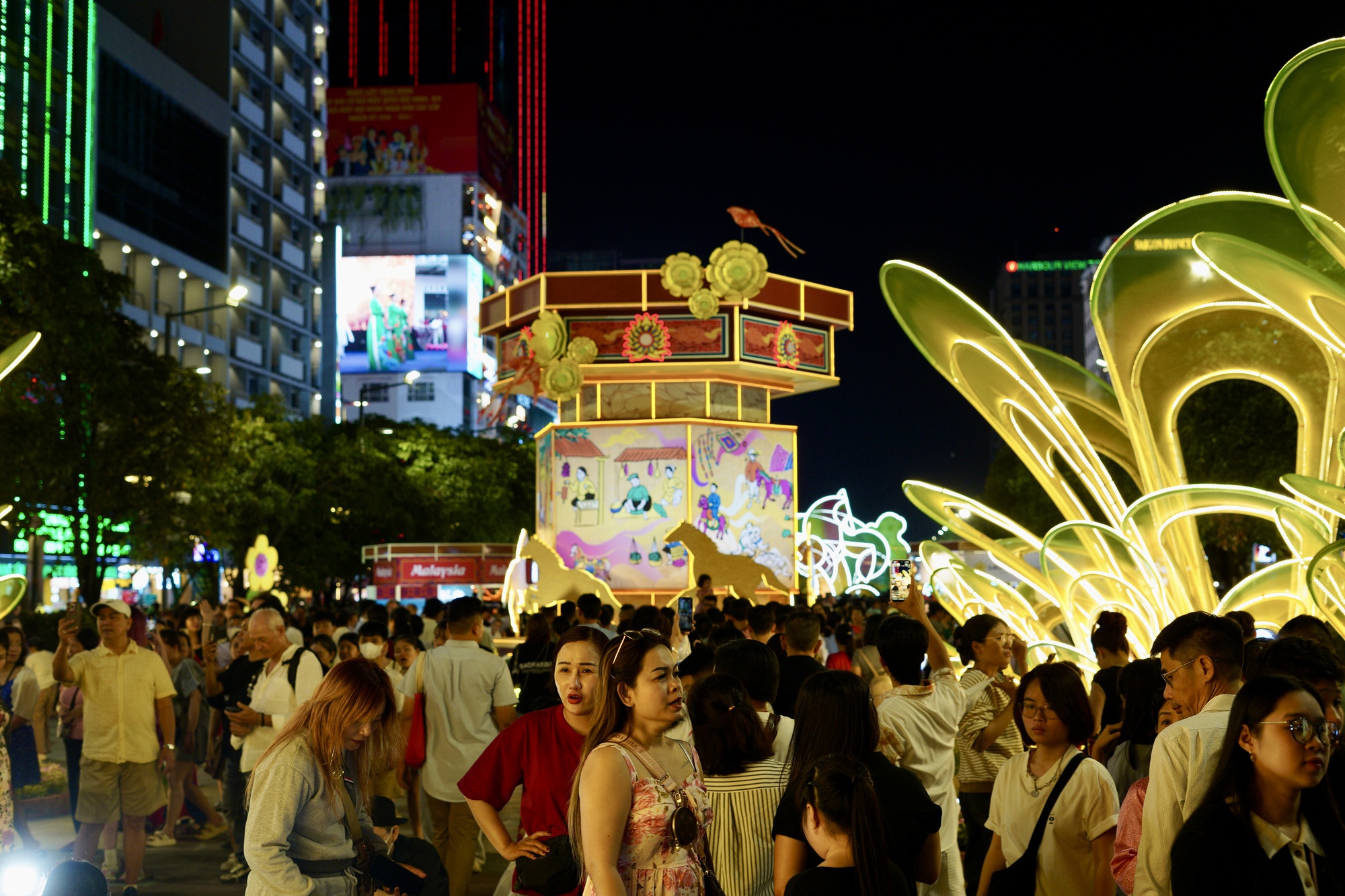 Không khí rộn ràng trong đêm khai mạc khi hàng nghìn người dân đổ về trung tâm thưởng ngoạn đường hoa.