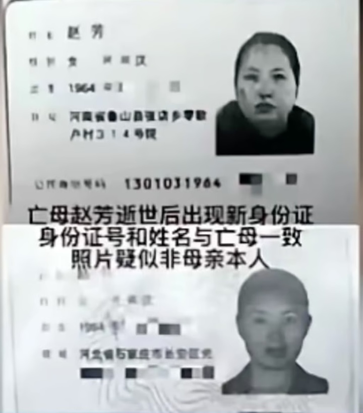Cậu của Sun đã tráo đổi ảnh và số chứng minh thư của vợ và chị gái mình (ảnh trên) để được thừa kế tài sản. (Ảnh: Douyin)