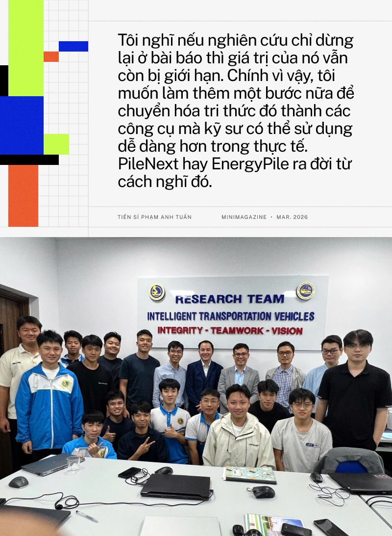 Tôi nghĩ nếu nghiên cứu chỉ dừng lại ở bài báo thì giá trị của nó vẫn còn bị giới hạn. Chính vì vậy, tôi muốn làm thêm một bước nữa để chuyển hóa tri thức đó thành các công cụ mà kỹ sư có thể sử dụng dễ dàng hơn trong thực tế. PileNext hay EnergyPile ra đời từ cách nghĩ đó.