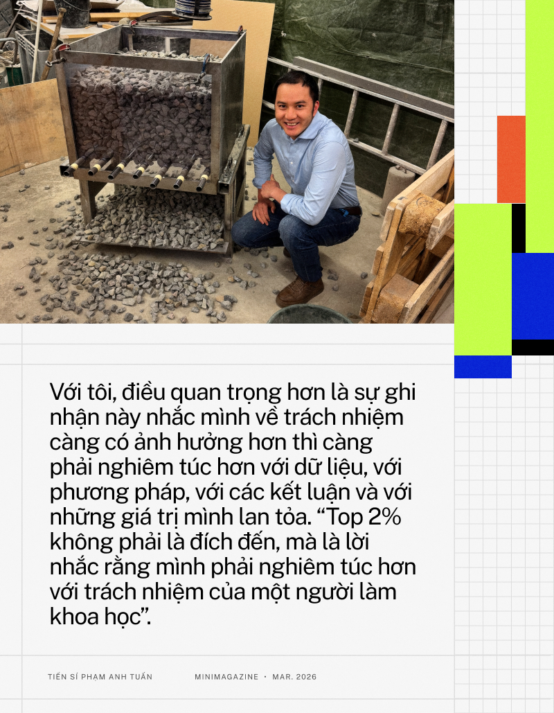 Nhưng tôi chưa bao giờ xem đó là đích đến. Tôi nghĩ nếu làm khoa học chỉ để hướng tới một danh hiệu, mình rất dễ đi chệch khỏi những câu hỏi cốt lõi. Với tôi, điều quan trọng hơn là sự ghi nhận này nhắc mình về trách nhiệm càng có ảnh hưởng hơn thì càng phải nghiêm túc hơn với dữ liệu, với phương pháp, với các kết luận và với những giá trị mình lan tỏa. “Top 2% không phải là đích đến, mà là lời nhắc rằng mình phải nghiêm túc hơn với trách nhiệm của một người làm khoa học”.