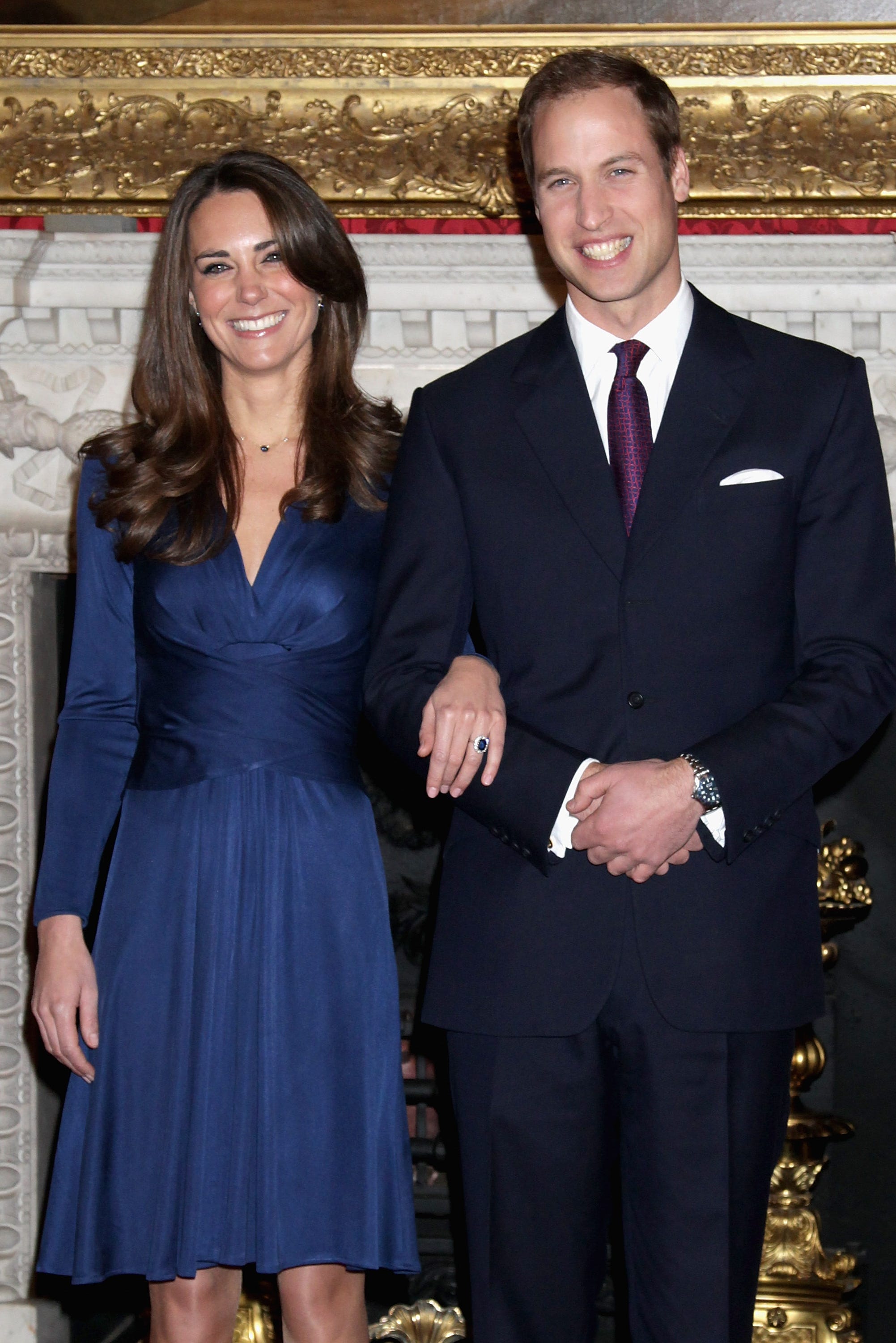 Nhắc đến xanh hoàng gia, hình ảnh đầu tiên nảy số trong đầu giới mộ điệu chắc chắn là chiếc nhẫn đính hôn huyền thoại. Viên sapphire xanh Sri Lanka 12 carat bao quanh bởi 14 viên kim cương không chỉ là tuyệt tác của Garrard, mà còn là kỷ vật truyền đời. Năm 1981, Công nương Diana đã diện bộ suit xanh navy thanh lịch mua tại Harrods trong ngày công bố đính hôn, tay đeo chiếc nhẫn sapphire rực rỡ. Gần 3 thập kỷ sau, tháng 11/2010, Vương phi Kate hoàn hảo viết tiếp câu chuyện truyền thống đó khi diện chiếc váy lụa Issa London màu xanh biếc, đeo trên tay đúng chiếc nhẫn của mẹ chồng, cười rạng rỡ như bước ra từ một bức tranh. Sắc xanh năm ấy đã thực sự trở thành một biểu tượng của sự tiếp nối và tình yêu.