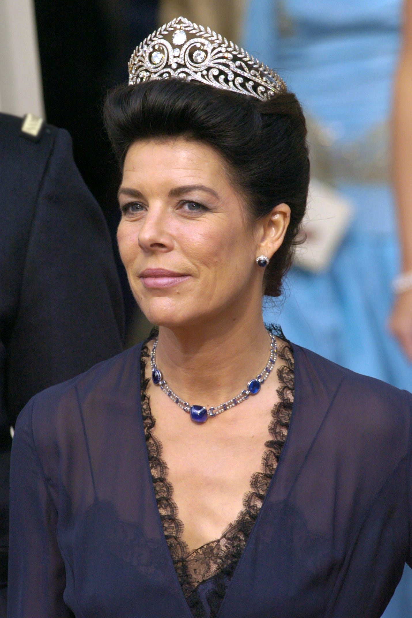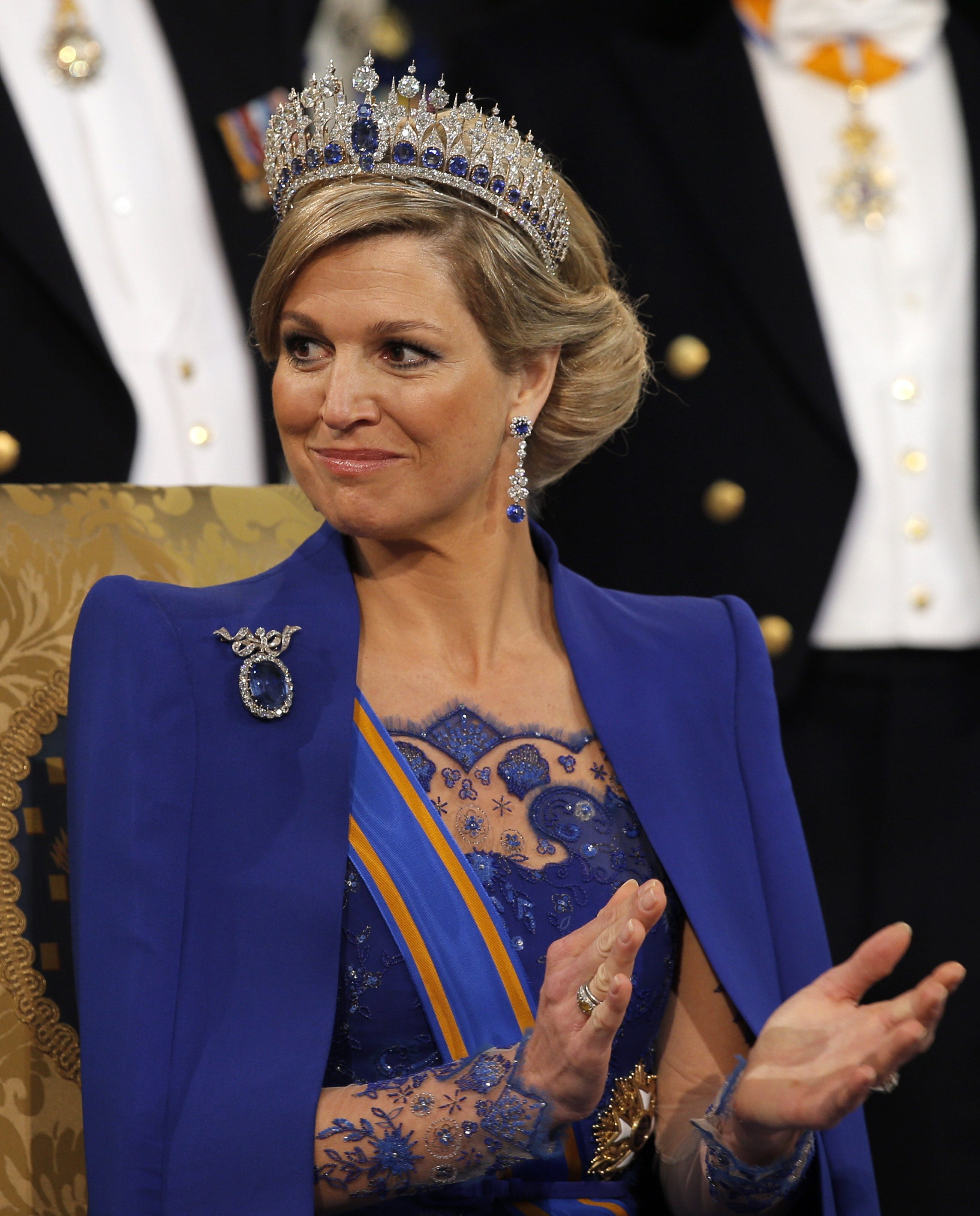 Sang đến Hà Lan, Vương hậu Maxima cũng chẳng kém cạnh khi đội chiếc vương miện The Dutch Sapphire Parure nặng trĩu lịch sử trong lễ đăng cơ của chồng năm 2013. Chiếc vương miện đính 600 viên kim cương và viên sapphire 44 carat đã làm lu mờ mọi thứ xung quanh. Đôi khi, không cần đến trang sức quá đồ sộ, chỉ một thiết kế váy lụa trơn màu xanh dương thẳm như cách Vương hậu Letizia của Tây Ban Nha diện trong chuyến thăm Hà Lan đầu năm 2024 cũng đủ toát lên sự nền nã, thanh tao mà khó có màu sắc nào sánh kịp. Hay như Vương nữ Caroline của Monaco, chỉ với sợi dây chuyền sapphire mài chóp nón mộc mạc từ thời mẹ mình Vương phi Grace Kelly kết hợp cùng đầm voan tím trầm, đã đủ phác họa lên bức chân dung của một quý bà thượng lưu thực thụ.
