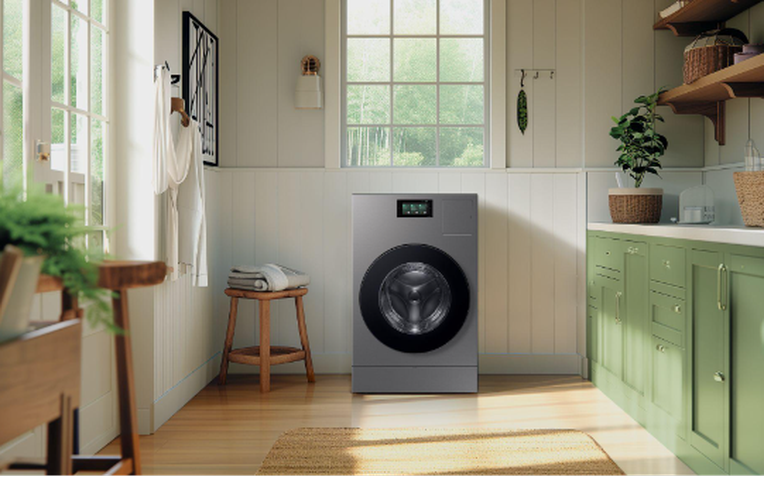 Màn hình AI Home 7 inch trên Máy giặt sấy bơm nhiệt Bespoke AI, "cánh cửa" mở ra thế giới giải trí Tết trong phòng giặt