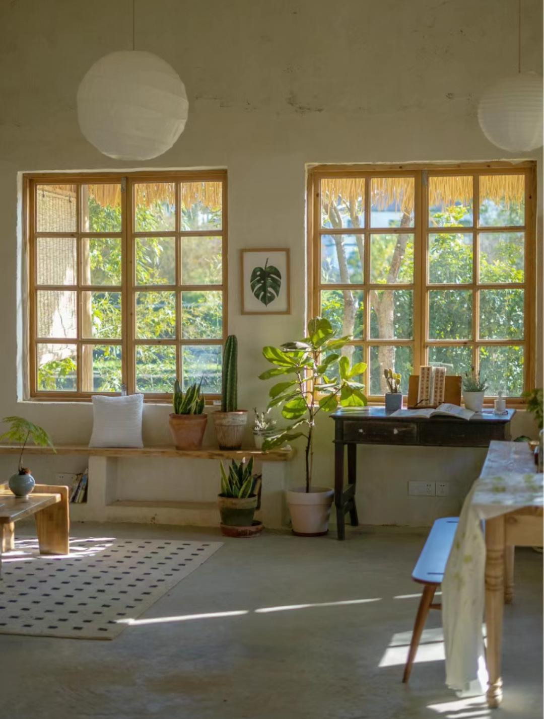 Nhà cũ đến mức “nhìn xuyên vách”, nhưng có sân rộng và một cây bạch quả hơn 150 năm tuổi. Cặp đôi giữ nguyên lối kiến trúc mộc mạc: trát xi măng, giữ mái gỗ cũ, nhặt đồ cổ về trang trí. Tất cả được hoàn thiện chỉ trong 1 tháng.