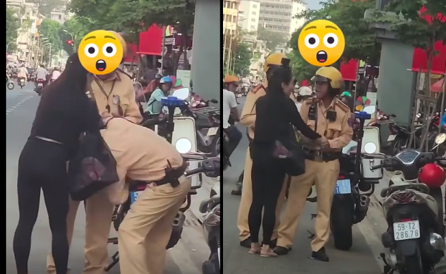 Giằng co với 2 CSGT giữa phố, giật tờ giấy xanh: Cô gái giải thích