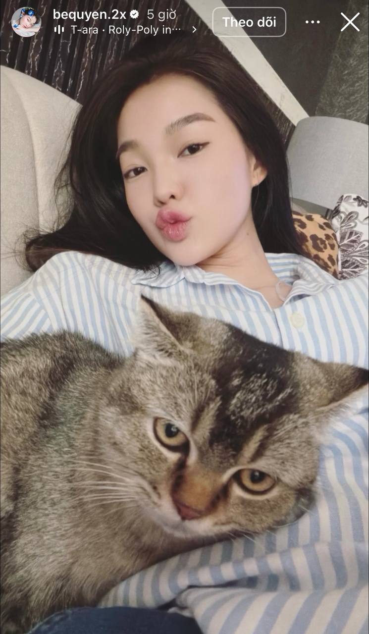 Người đẹp Bé Quyên thì đăng tải khoảnh khắc ở nhà cùng chú mèo cưng.