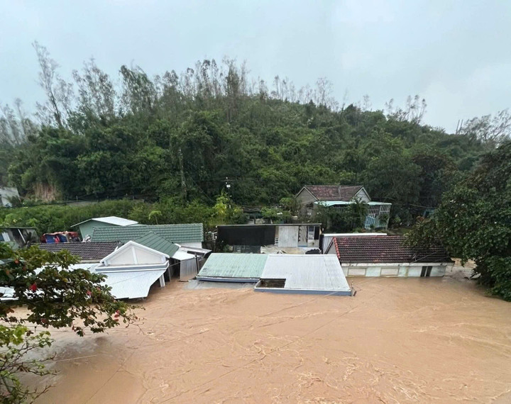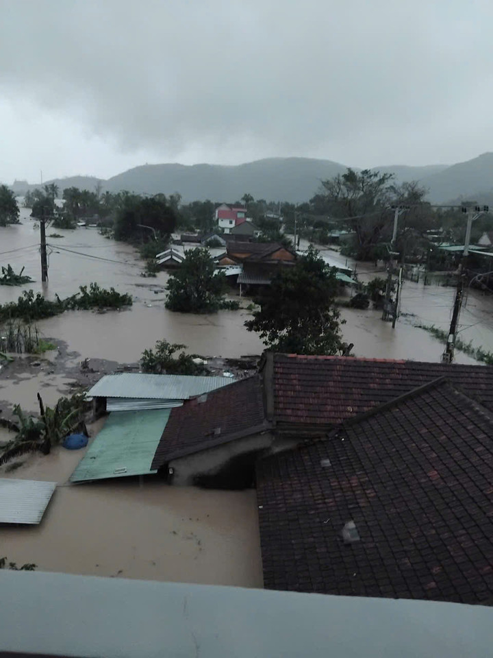 Chị Nguyễn Như Bảo Trâm (xã Đồng Xuân, tỉnh Đắk Lắk) cho biết, xung quanh nhà chị hiện đã ngập nước. "Nhiều gia đình lên mái nhà ngồi, chờ lực lượng cứu hộ đến ứng cứu" - chị Trâm nói.