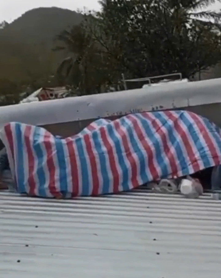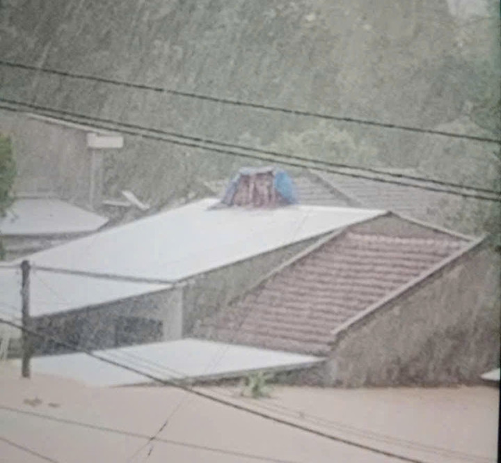 Một người dân cho biết:"Tôi phải che tấm bạt trên nóc nhà rồi đưa các con vào trú ẩn. Giờ nước dâng nữa cũng không biết làm sao" .