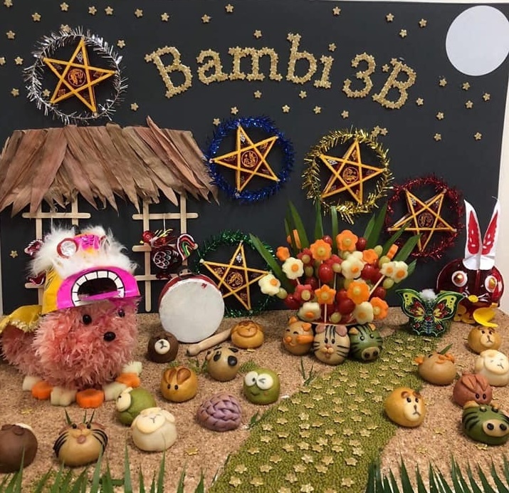 Mâm cỗ Trung thu lạ mắt với chủ đề những con thú trông trăng.