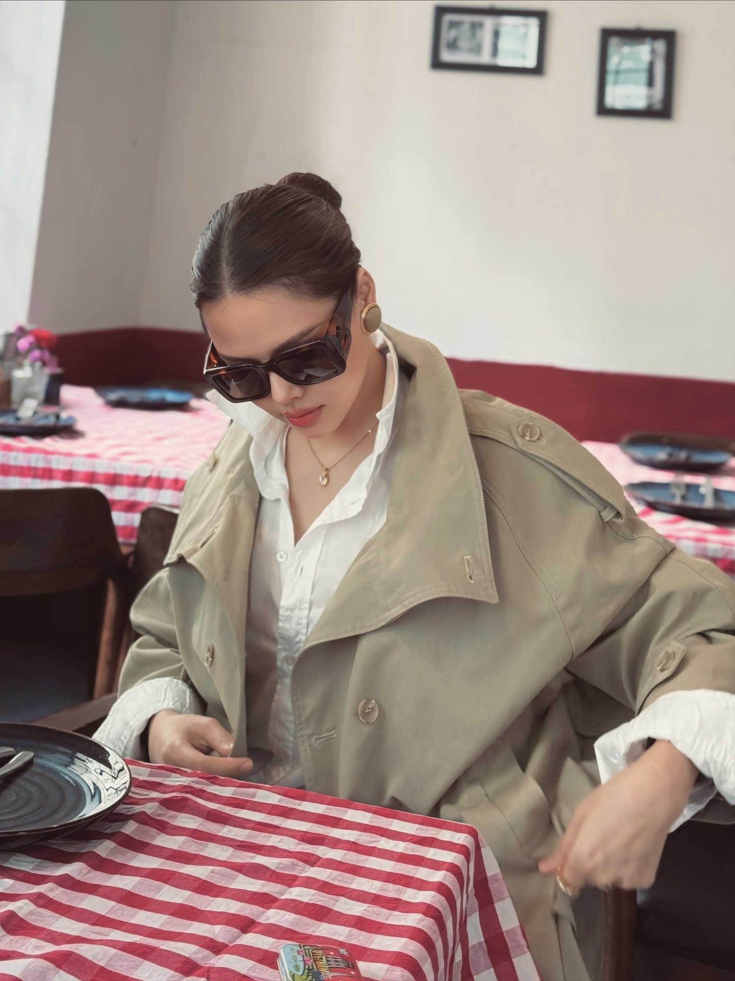 Các nàng dâu hào môn thường ưu tiên trench coat với thiết kế đơn giản, màu sắc nhã nhặn như be, kem hoặc nâu nhạt. Khi phối cùng váy liền thân hoặc quần âu, trench coat mang đến cảm giác thanh lịch, tinh tế mà không cần quá nhiều phụ kiện đi kèm. Chính sự tiết chế trong cách lựa chọn và phối đồ đã làm nên nét sang trọng rất riêng của kiểu áo khoác này.