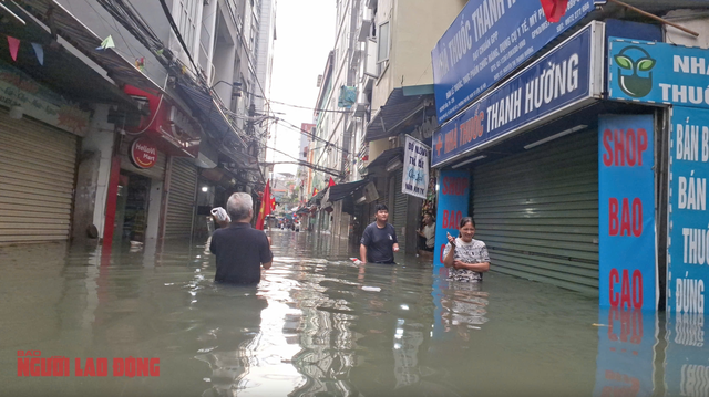Con phố ở phường Từ Liêm ngập ngang người. (Ảnh: Người Lao Động)