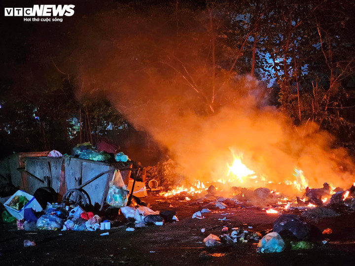 Một số bãi rác ở Hà Đông còn xuất hiện cảnh đốt rác từ chiều, kéo dài đến tận rạng sáng hôm sau.