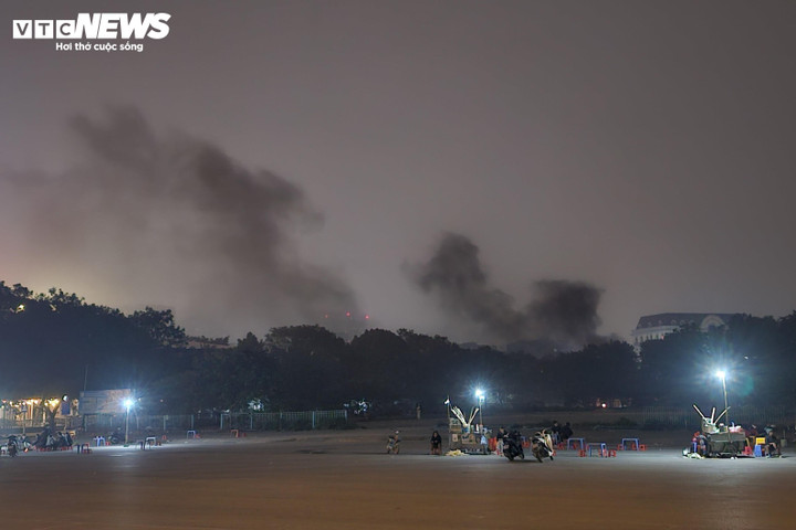 Tại xã An Khánh, trên một bãi đất trống, nhiều đêm liền liên tục xuất hiện những đám rác cháy âm ỉ. Dù đã 23h, khói vẫn cuộn lên đen đặc, mùi khét len vào từng căn hộ chung cư gần đó.