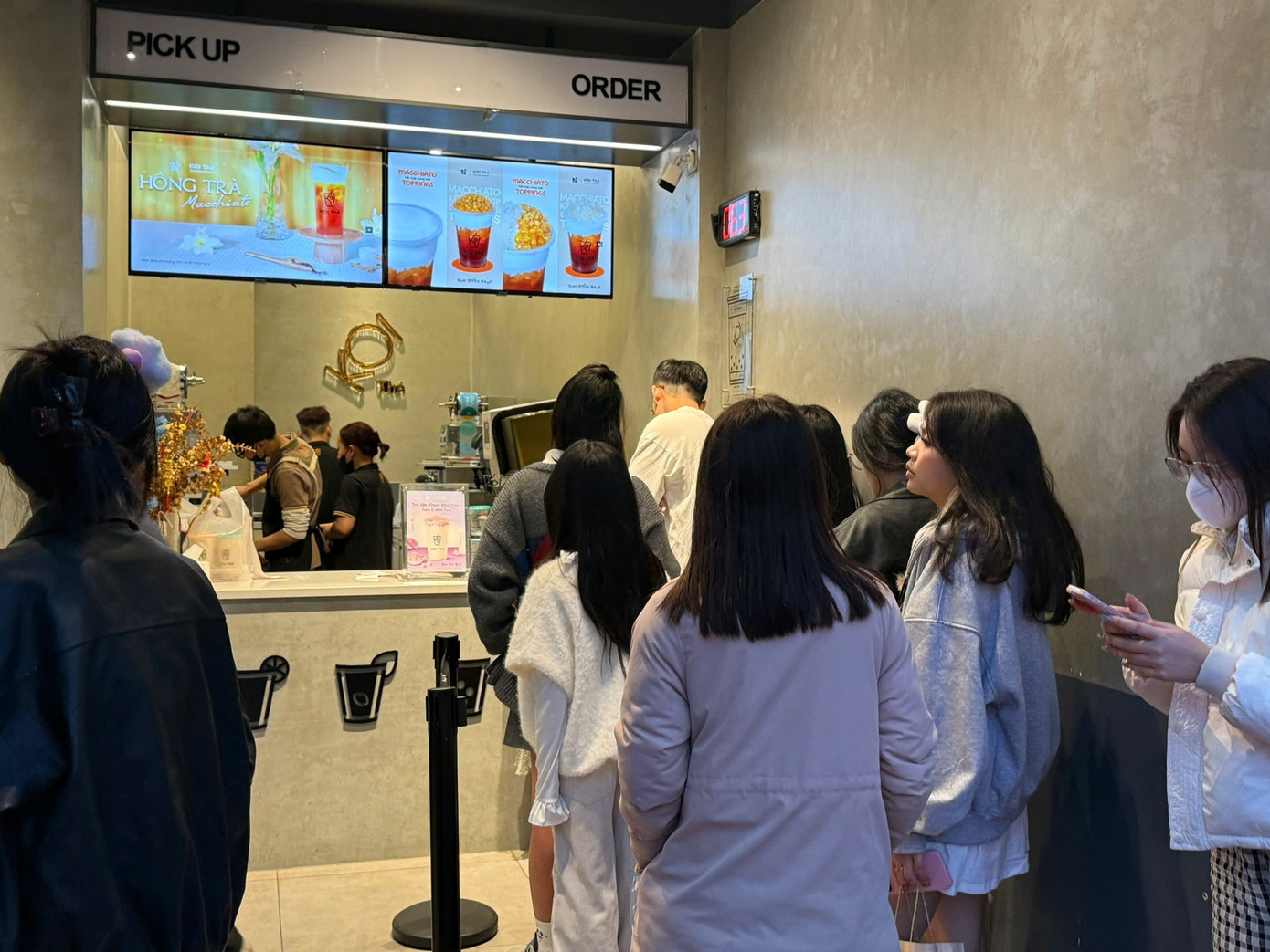 Trà sữa, kem là một trong những món "giải ngấy" đắt khách ngày đầu năm. Các thương hiệu lớn giữ giá ổn định như ngày thường, hàng dài bạn trẻ xếp hàng.