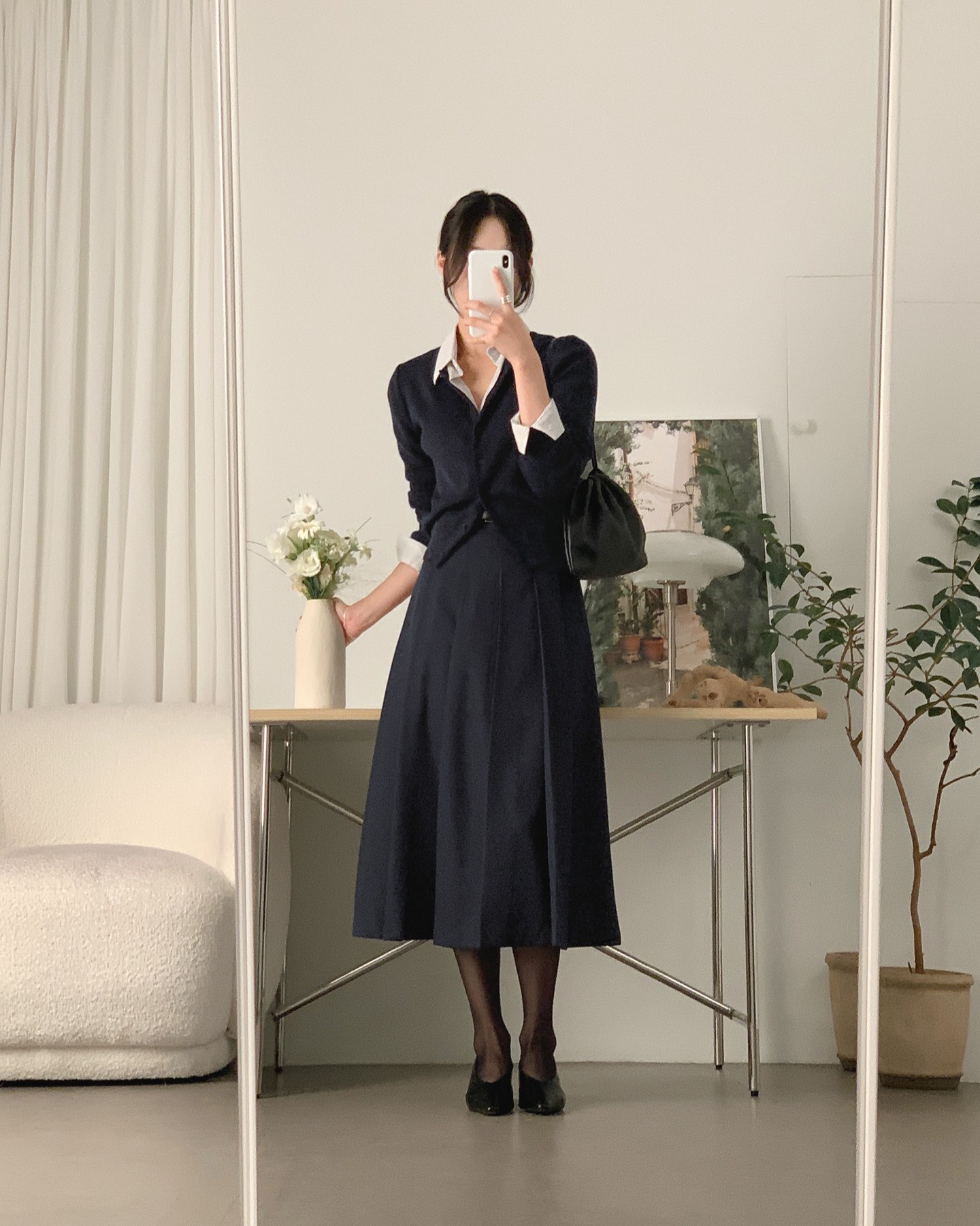 Điểm cộng lớn nhất của chân váy chữ A nằm ở sự linh hoạt. Với độ dài ngang gối hoặc qua gối một chút, kiểu chân váy này vừa đủ kín đáo cho môi trường công sở, vừa giữ được nét mềm mại, nữ tính. Nếu muốn hình ảnh chuyên nghiệp, bạn có thể phối cùng áo sơ mi trắng, giày cao gót mũi nhọn và túi xách tối giản. Còn khi cần một chút mới mẻ, hãy thử kết hợp với áo blouse tay phồng hoặc áo thun trơn ôm dáng, thêm đôi giày slingback là đã đủ nổi bật.
