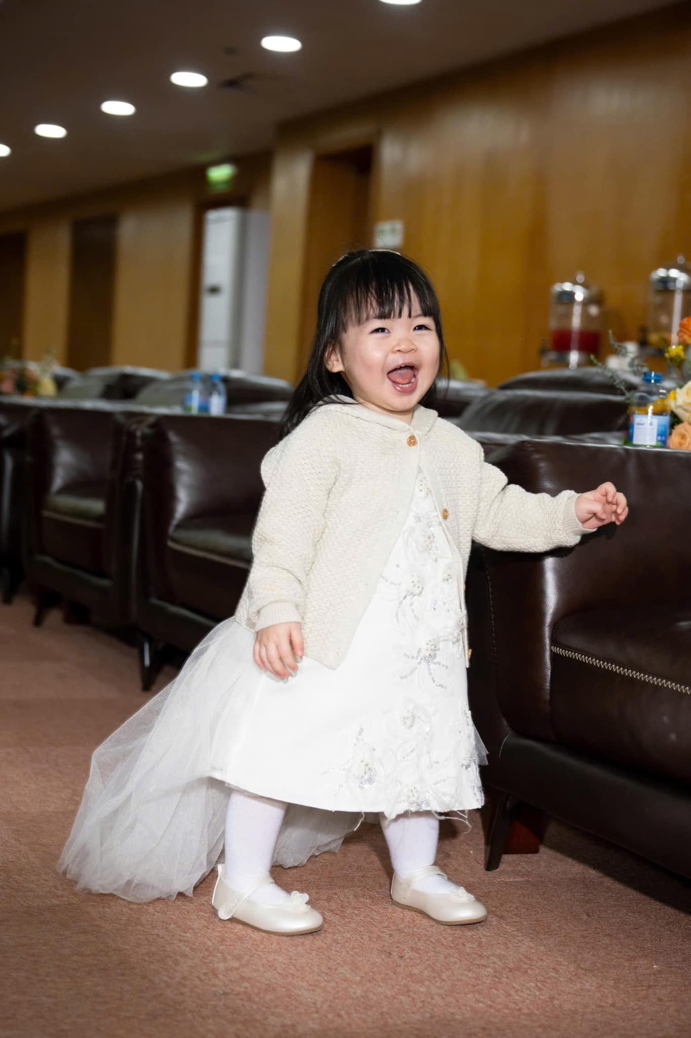 Khoảnh khắc công chúa nhỏ đu người lên khi nắm tay bố và bác, khiến cả hội trường bật cười vì sự đáng yêu và dạn dĩ của "công chúa nhà Chủ tịch". Nhiều người bình luận rằng: "Bé đúng là bản sao thu nhỏ của mẹ, vừa xinh xắn vừa đáng yêu".
