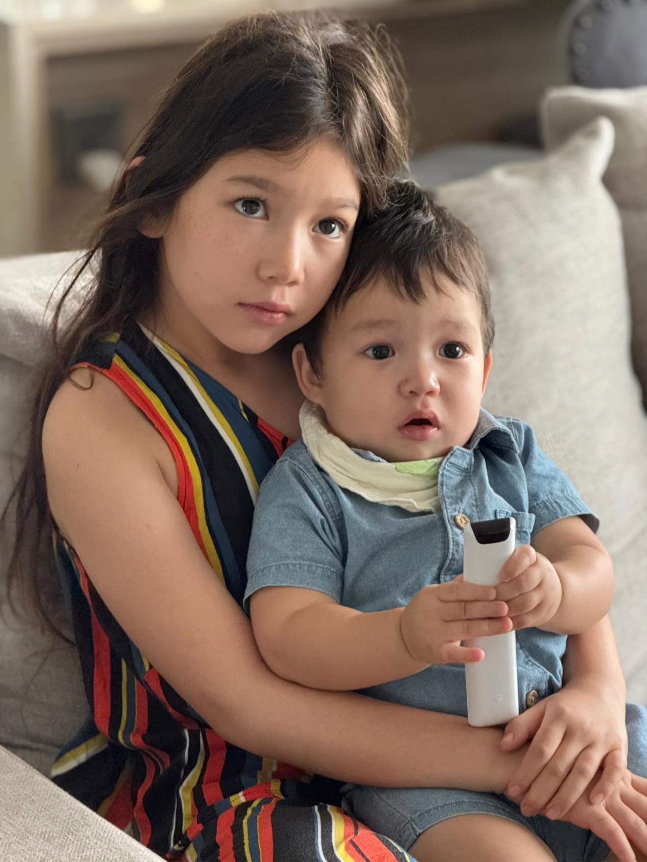 Trong những tháng đầu đời, em út Luca luôn được chị Myla quấn quýt chăm sóc, nhiều lần khiến mẹ xúc động bởi sự tình cảm, dịu dàng mà cô chị bày tỏ với em trai.