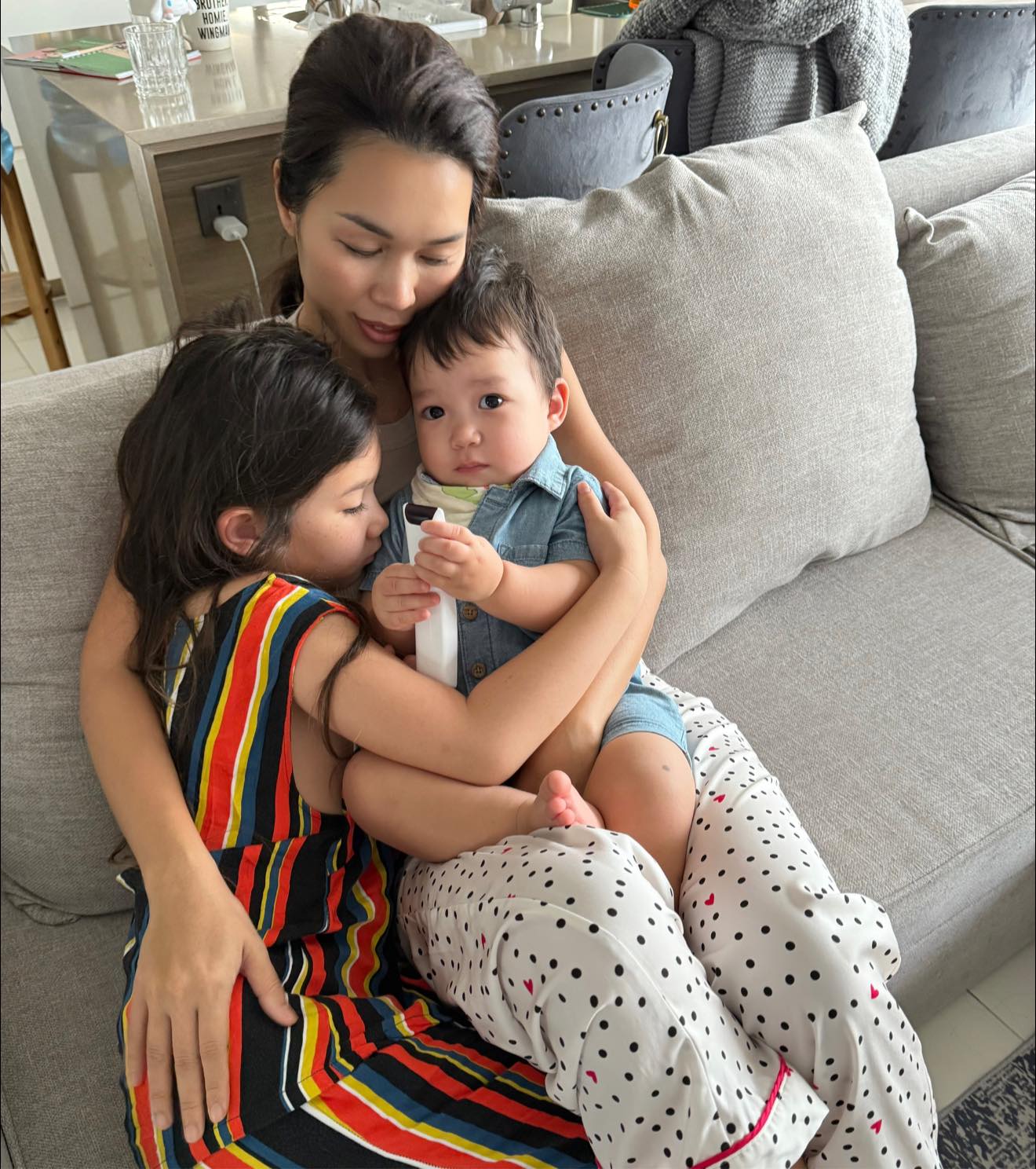 Chị Myla quấn quýt chăm sóc em trai Luca, khiến mẹ Hà Anh không khỏi xúc động.