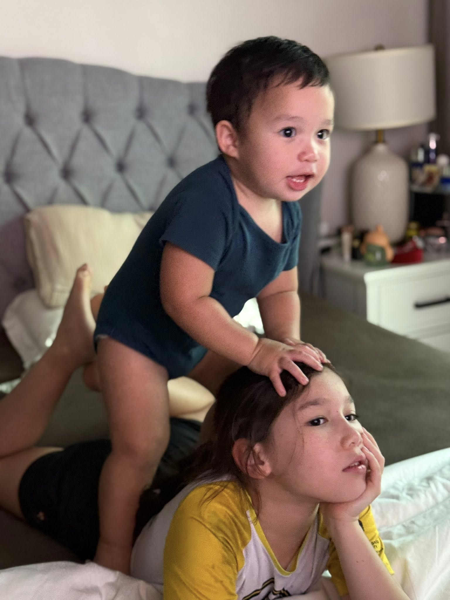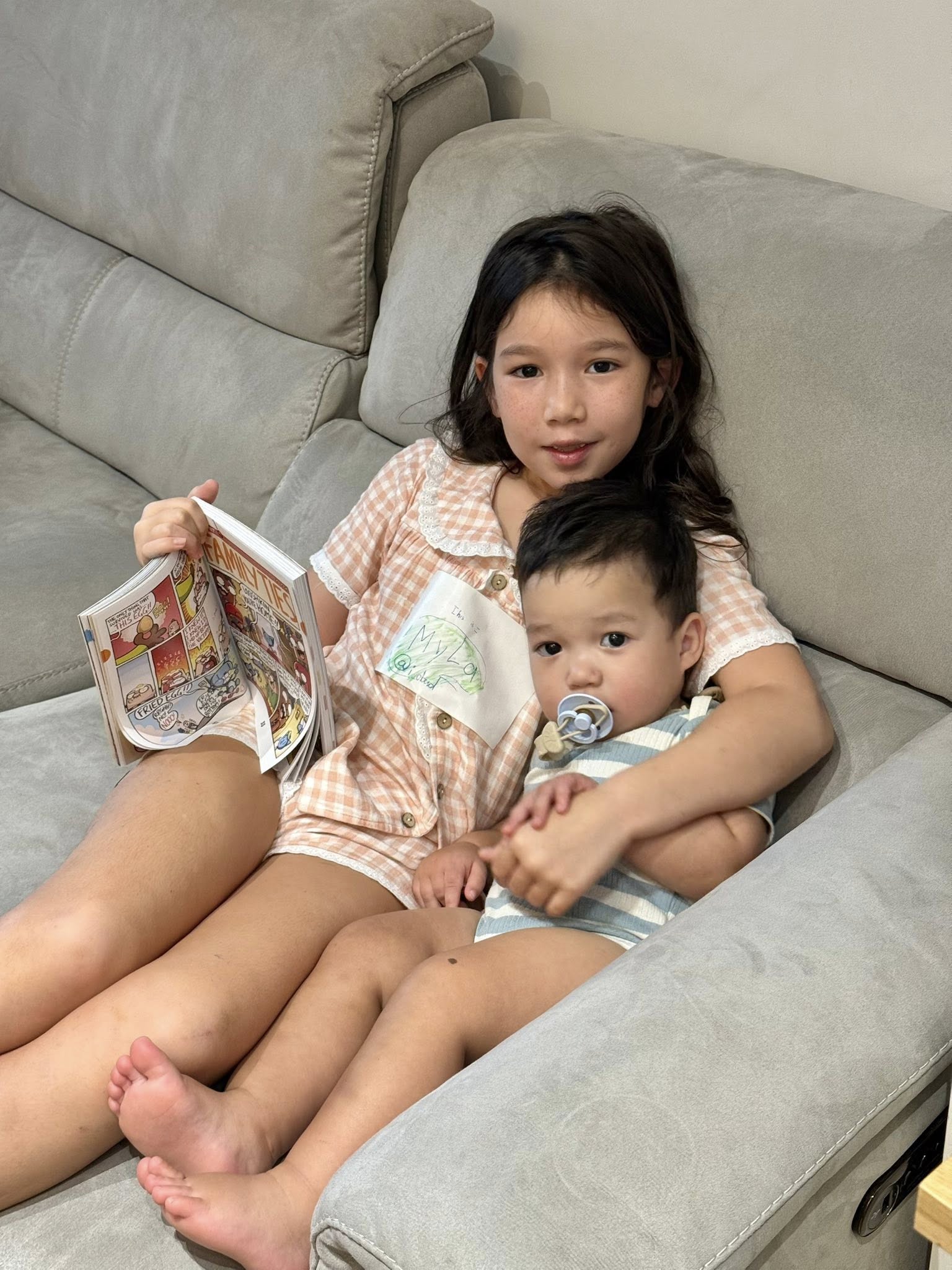 Hai chị em Myla và Luca chơi đùa cùng nhau.