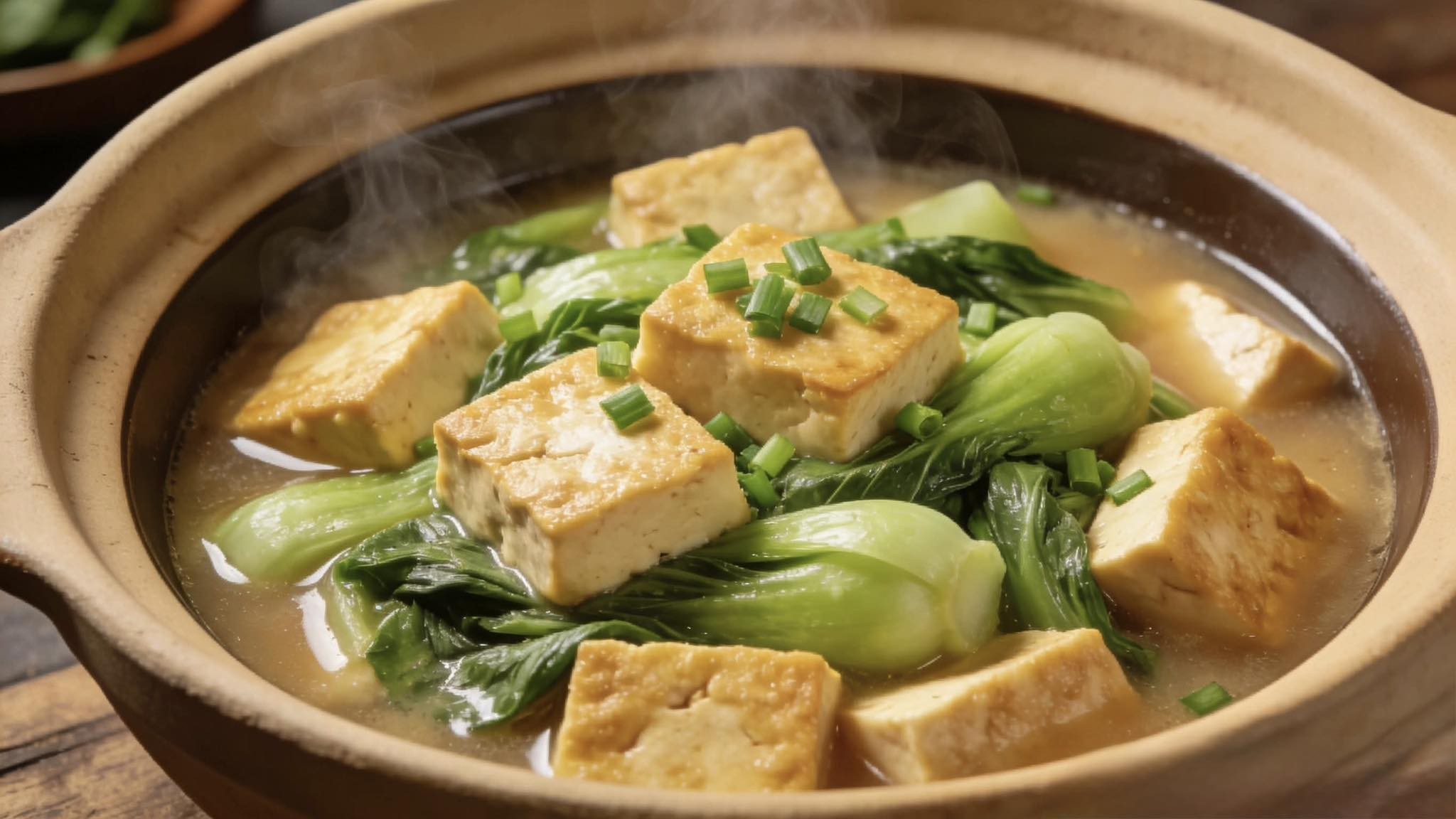Đậu phụ là nguồn protein thực vật chất lượng cao, còn cải thìa là loại rau giàu chất xơ, ít chất béo và đường. Khi hai loại này được nấu cùng nhau, hương vị của chúng hòa quyện tạo nên một món ăn mềm, thơm ngon và rất bổ dưỡng. Món ăn này là lựa chọn tuyệt vời cho những người đang cố gắng kiểm soát lượng đường trong máu, vì nó cung cấp đủ chất dinh dưỡng mà không làm tăng đường huyết. Đây cũng là một món ăn gia đình đơn giản và phổ biến.