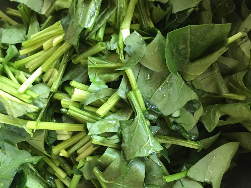 Nguyên liệu: 200g rau bina, 1 quả trứng, một nắm tôm khô (hoặc tép biển khô), gia vị vừa đủ, tinh chất cốt gà.