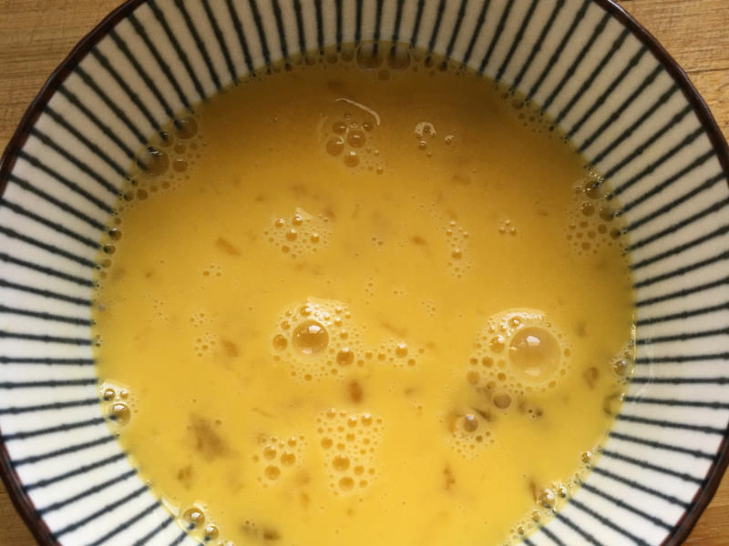 Bước 1: Rửa sạch rồi cắt rau bina thành từng khúc. Rửa sạch tôm khô, để riêng (bạn có thể giã dập tùy thích). Đập trứng vào bát, đánh tan, để riêng. Cho lượng nước vừa phải vào nồi, đun sôi. Sau đó thả rau bina vào chần qua rồi vớt ra, để ráo nước.