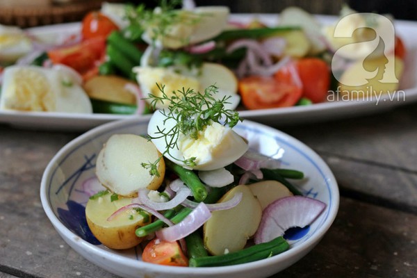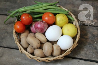 Bạn cần chuẩn bị những nguyên liệu sau cho món salad rau củ: - 2 quả trứng - 5-6 củ khoai tây baby - 100g đậu cove - 3 quả cà chua - 1 củ hành tây, chanh, giấm, dầu ăn |