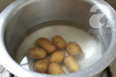 Khoai tây rửa thật kĩ phần vỏ ngoài và cũng đem luộc 10-15 phút. |