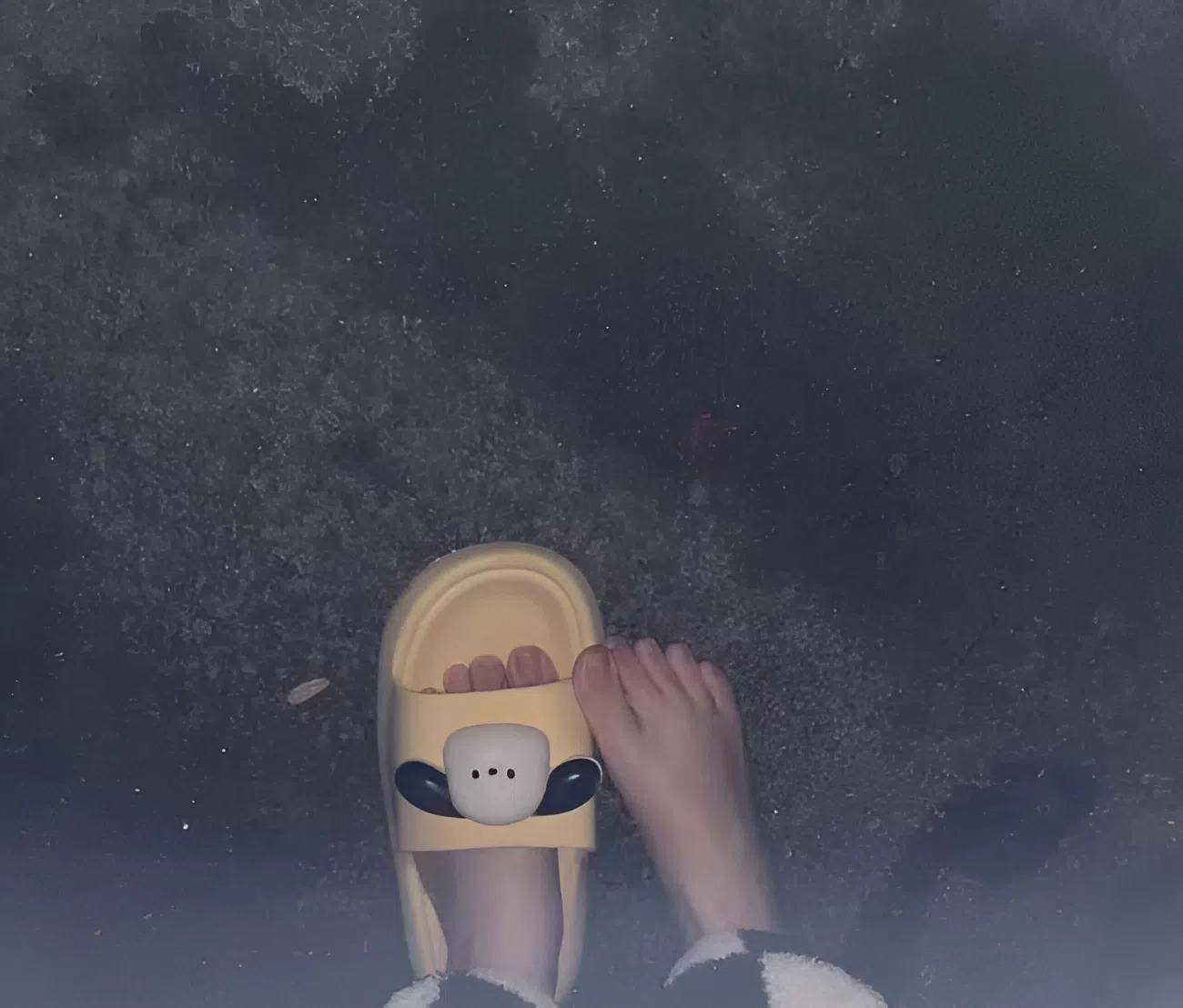 Cô gái trong bộ đồ ngủ, đi một chiếc dép lê, rời khỏi nhà giữa trời lạnh. (Ảnh: Aboluowang)